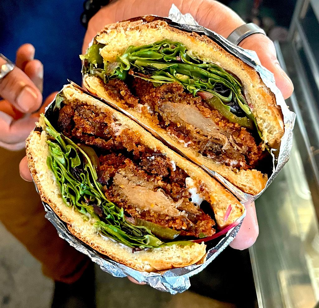 Very cute shop with vegan options on the menu, got the Nashville “chicken” sandwich, also got some vegan mushroom gummies and some truffle oil!