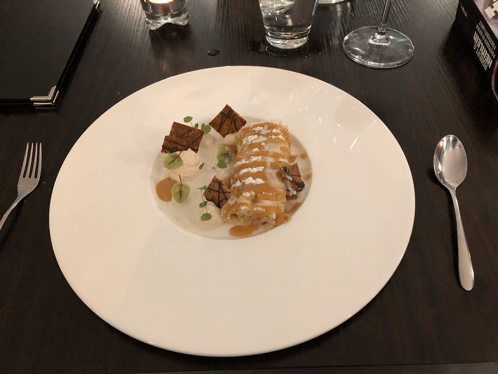 We both had the Polenta with Lentils and Pomegranate, Stuffed Potatoes with 'Shrooms and Kale, and we both tried different desserts. All of the courses had a balance of textures and flavours. Although full, we finished our amazing desserts. I recommend the chocolate cake with caramel ice cream. All dishes had lovely presentations.