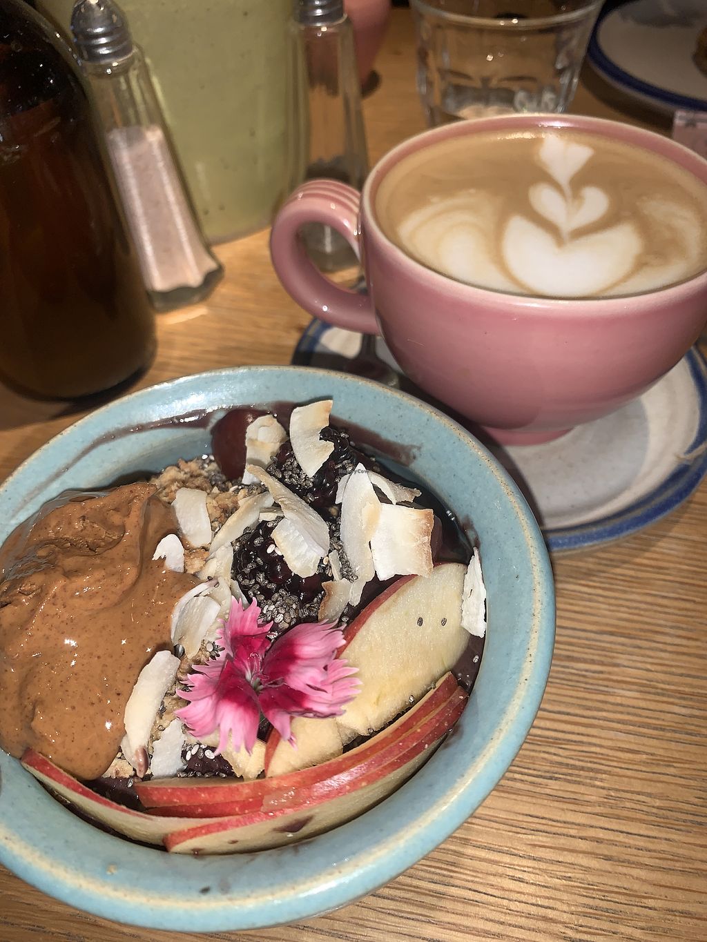 açai bowl and almond cappuccino