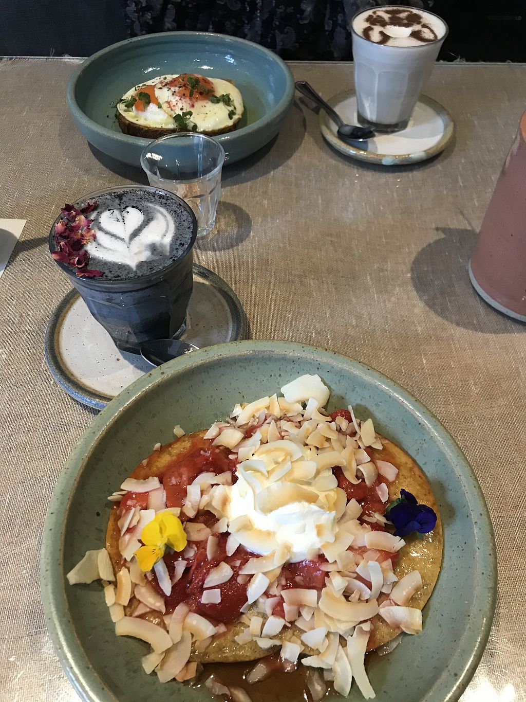 pitaya smoothiebowl, blt sandwich, avocado toast with strawberries & d…
