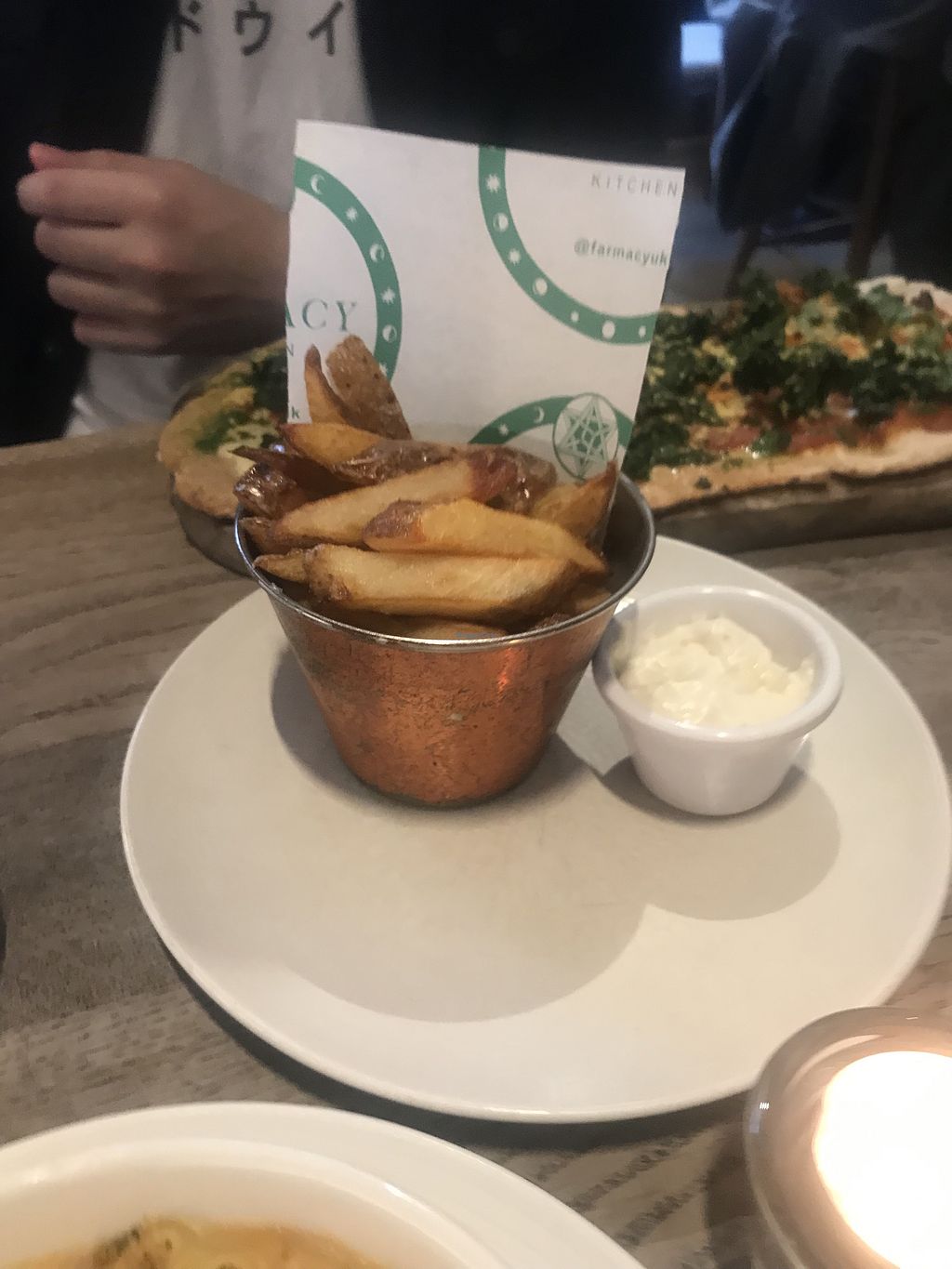 Green soup with side of charred broccoli