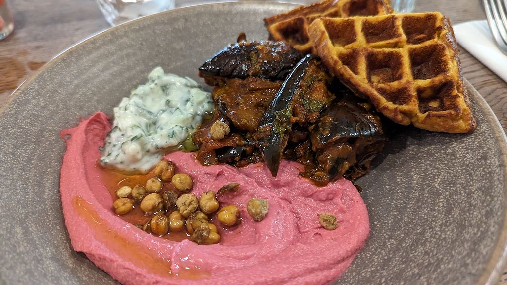 FALAFEL WAFFLE (SS, SY) 18 A fresh golden waffle served with aubergin…