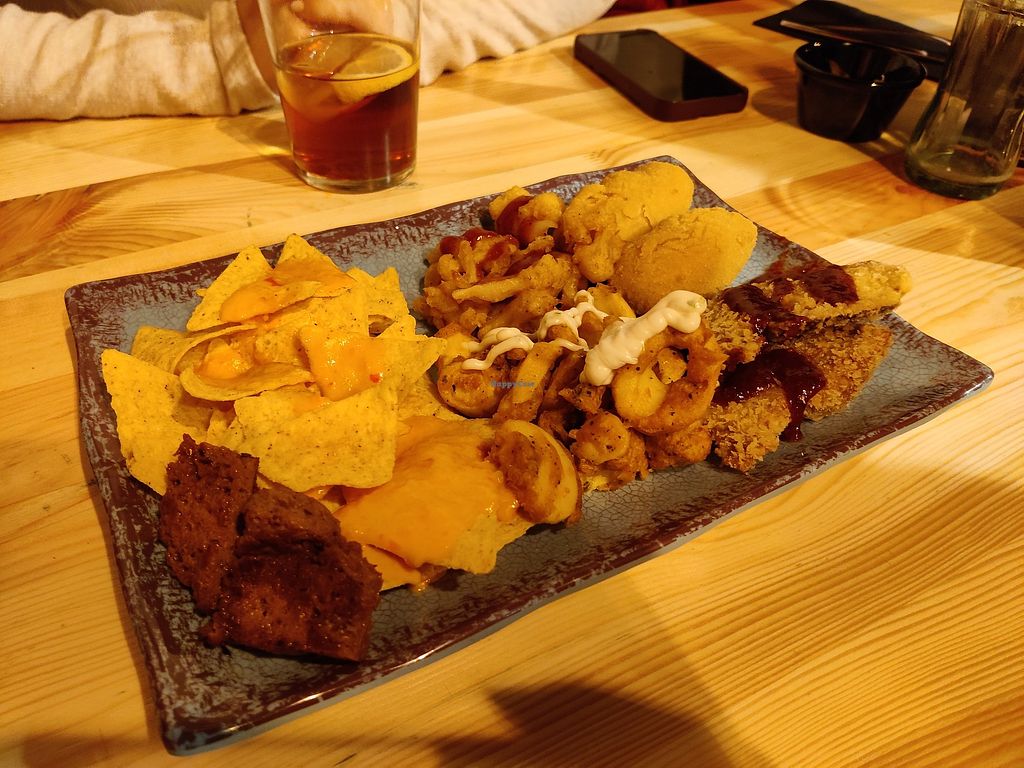 Nice pub in the city center with many vegan options (at least 10 : tapas and burgers) and not expensive. The staff was nice and welcoming.