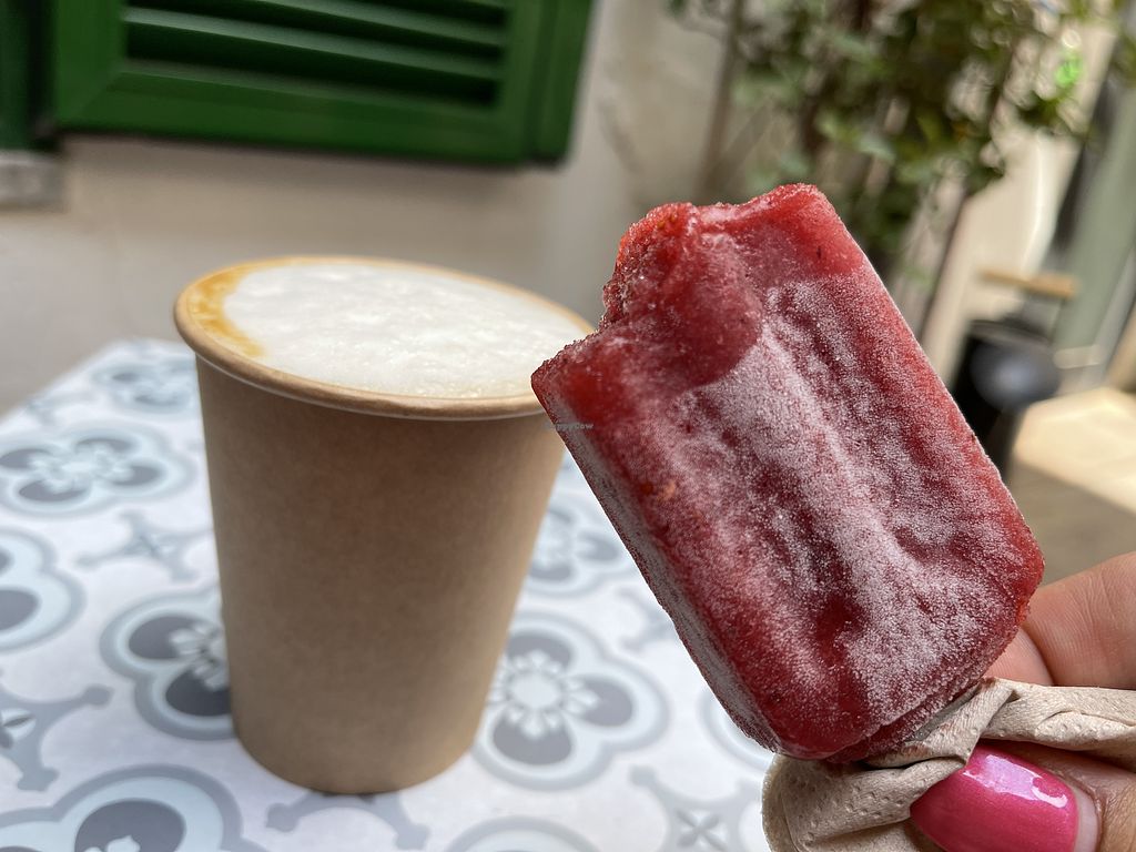 Das Eis am Stiel ist 100% Frucht und der Cappuccino ist mit Haferdrink zu bekommen! Außerdem gibt es noch Kleidung und Schmuck dort zu kaufen.