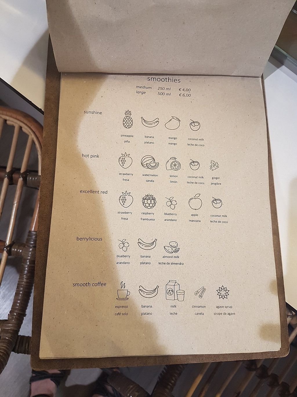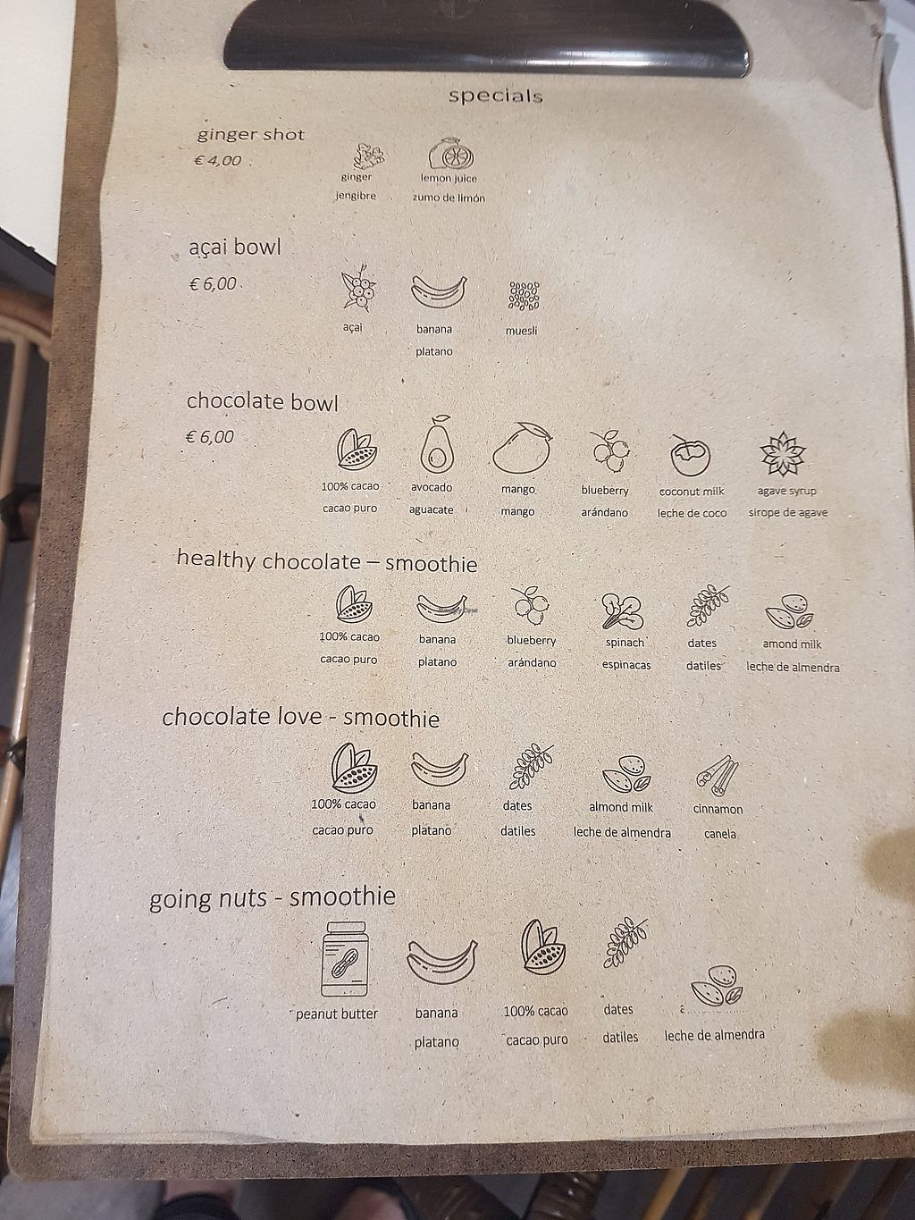 Me and my wife bought two smoothies. Both were very tasty and well made. Nothing to complain about. Smoothies were 6€ each. They also had juices and açaí bowls.