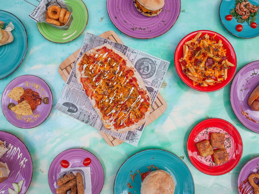 Sea rings (garlic and tartar sauce) and sweet potato fries
