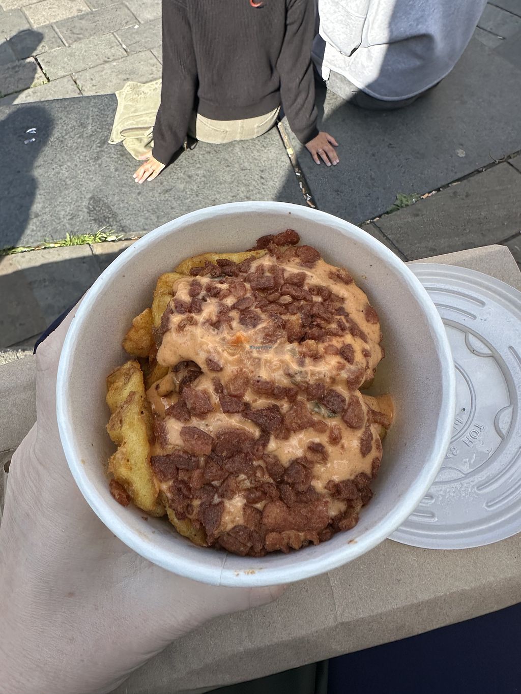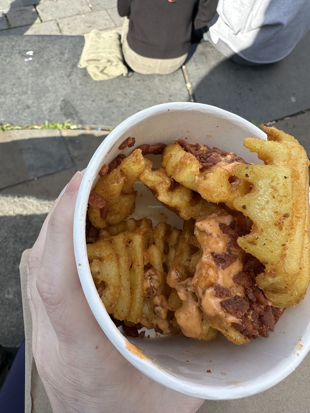 For the size of waffle fries that I had, I felt like it was not expecting too much to have sauce and fakin bits layered to the bottom. The flavor was fine but I wasn’t wowed.