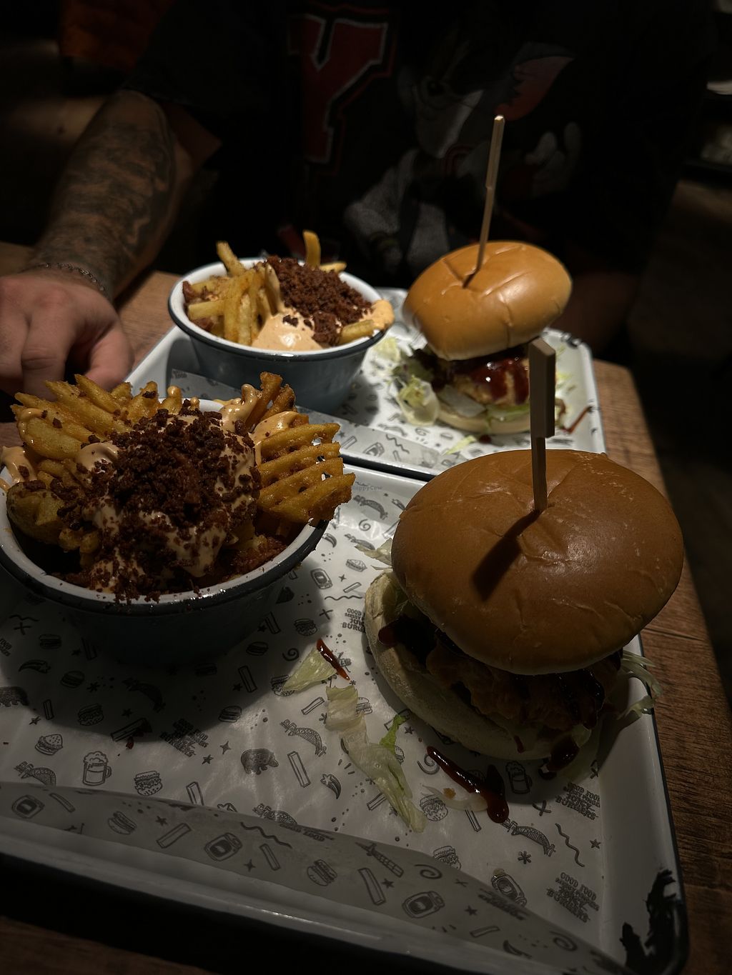 Spenny place but decent portions. Sides were particularly good and weren't outshone as can often the case. Loved the loaded tater tots. Good drink selection. Took ages to get staff attention for drinks and for bill.