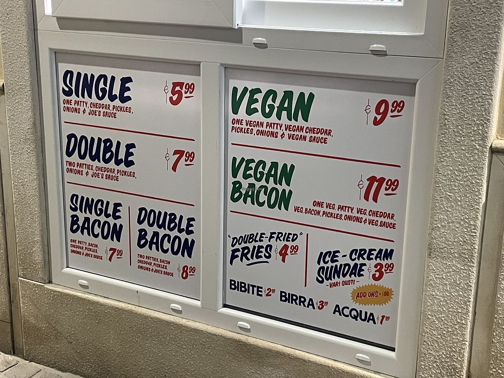 American Non-veg Serves meat, vegan options available. Burger place offering two clearly labeled vegan burgers, including a vegan bacon burger, as well as fries. Open Mon-Sun 18:30-23:30. More