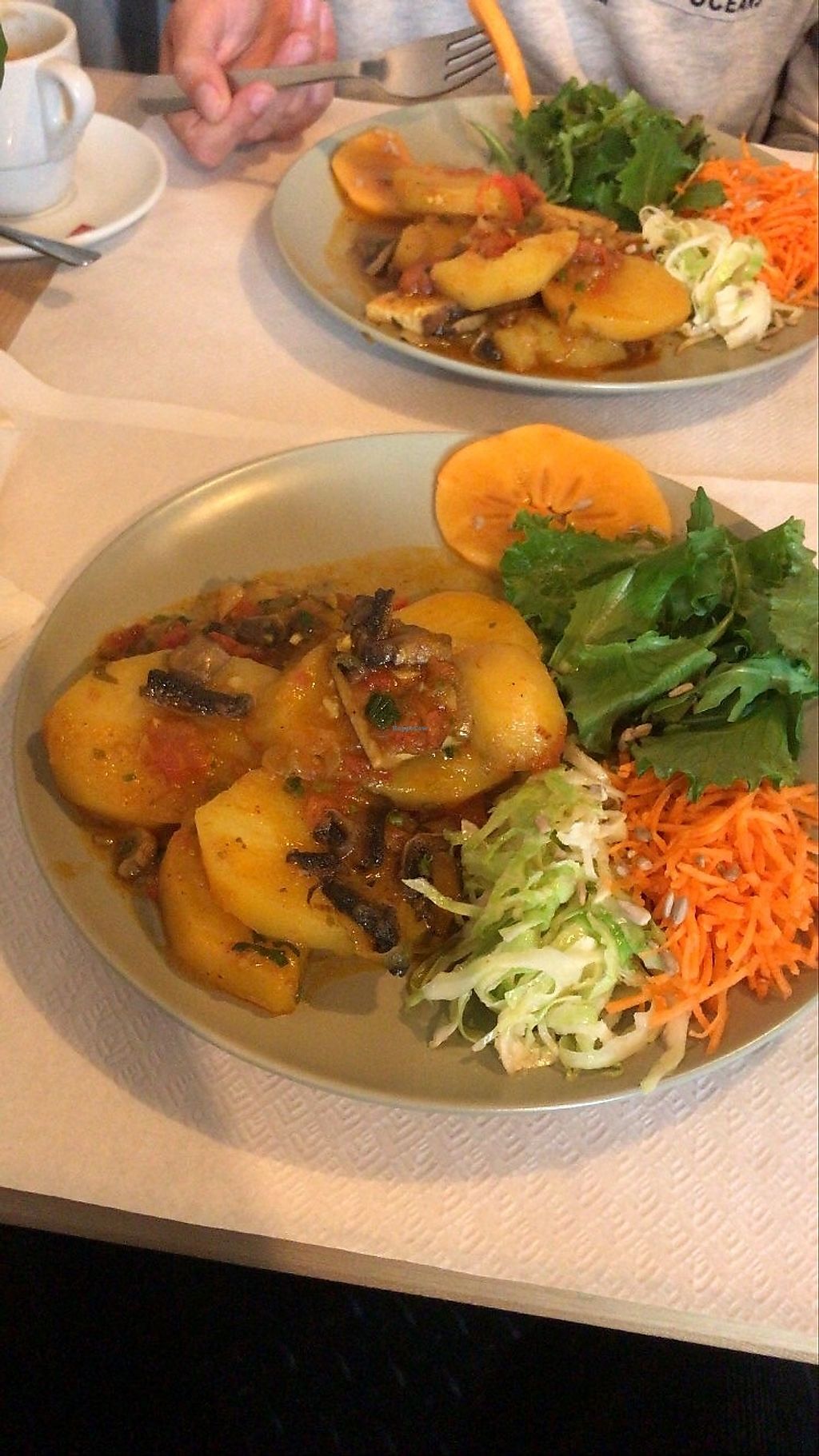 Nice veggie place. They have a dish of the day and a selection of cakes. Excellent fruit juices.