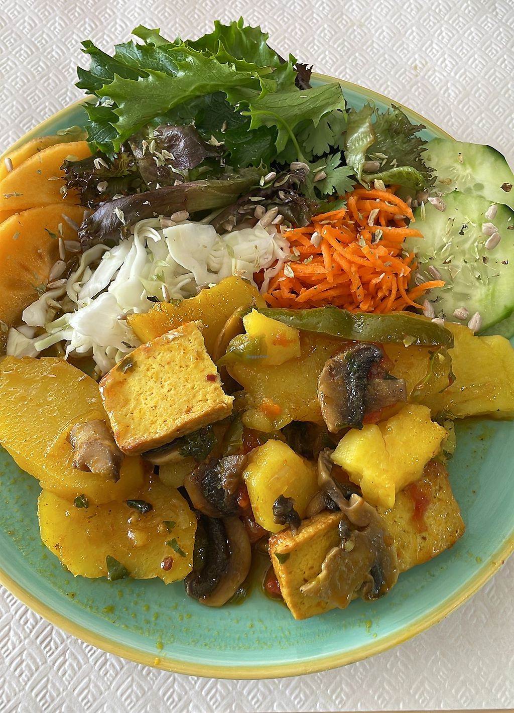 The dish and juice of the day are super tasty and comforting. It’s a cafe/supermarket, that sells all the products you’re looking for as a vegan. Would recommend!