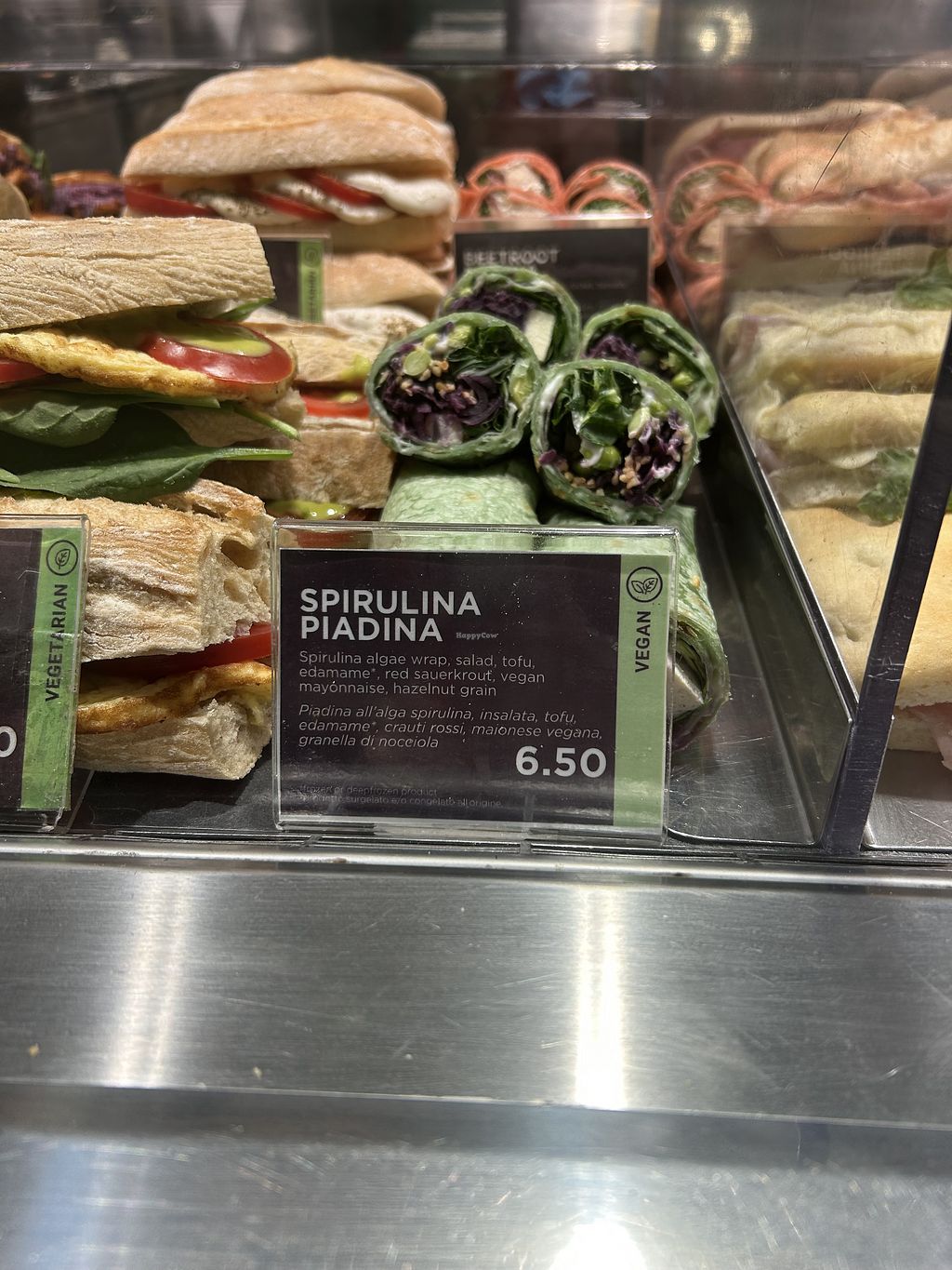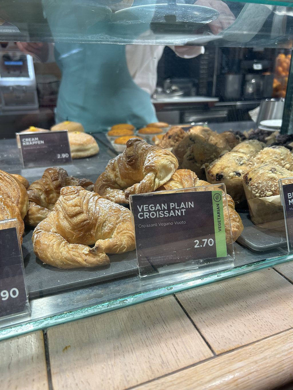 I had a layover in Rome airport with some time to kill for food and I thought of opening the happy cow app and see if anything is around. I’m happy I did because this cafe was right next to my gate and they had quite a few vegan options. I tried their plain vegan croissant which tasted more like the Italian brioche