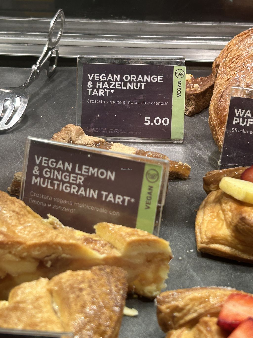 Be mindful there are 3 Natoos at FCO Airport. I went to the one outside gate A48 so can't comment on the others. They had 3 vegan croissants including blackberry, plain and Turmeric. All clearly labelled. Also has alternative plant milks available including oat (avena), however they were sold out of soy. Blackberry croissant and oat latte were nice. Good place for a snack on an outgoing flight.