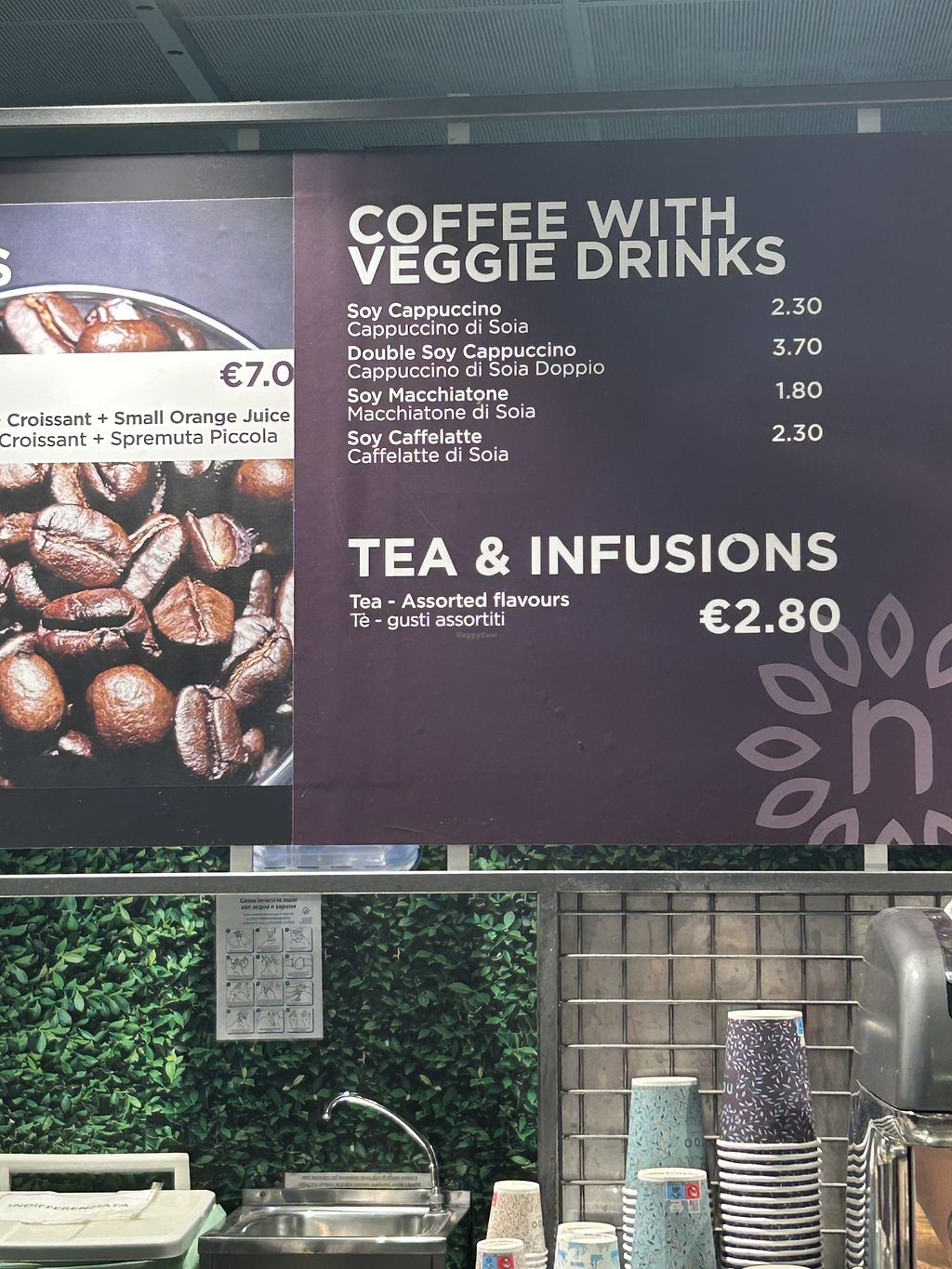 Vegan croissant was yummy and fluffy! Soy cappuccino was kinda small but okay. Store is before check in near Terminal 3. Happy that they have vegan options at the airport but besides tge vegan croissant not that special
