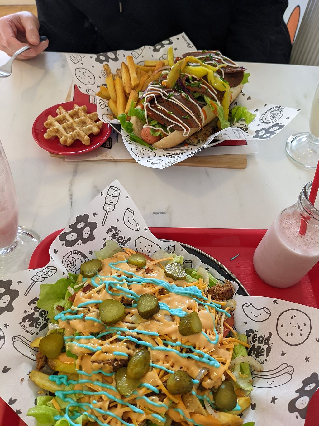 Fully vegan café serving loaded hot dogs, fries and salads, as well as a mouth-watering selection of milkshakes and dessert options! Really funny vibe inside and the people working there seem really friendly and great hosts! I would recommend travelling out of your way for a visit here. Five stars all the way!