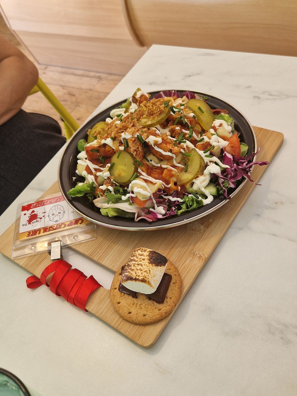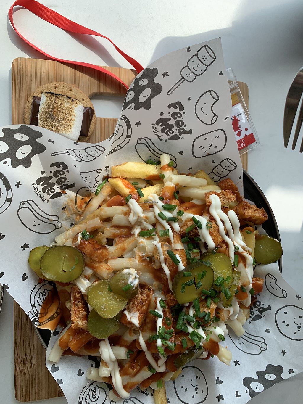 If you're in Beeston this place is so worth the visit! The restaurant is super cute and bright, the staff are lovely, it's a local, independent business and the food is amazing! Had the Satay Away (pictured) on fries with a bbq mac and cheese side (pictured). The peanut sauce was to die for, creamy and nutty! The mac and cheese was ultimate comfort food. The portions are so generous, I ended up taking half the side home because even that was huge! Eating in means you also get a cute little dessert that's indervidualy themed to each meal. Parents who are both non-vegan still loved the food and said they'd definitely come back another time which is a huge win! They had the bbq mac and cheese on hotdog and fries (pictured). They also do takeout, but think it's collection only. The takeout is slightly cheaper as the portions are a little smaller and don't come with the indervidual dessert (but still get loads of yummy vegan food!). Look forward to getting to try more of their menu another time!