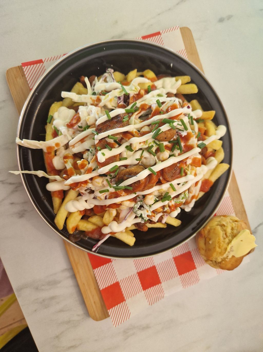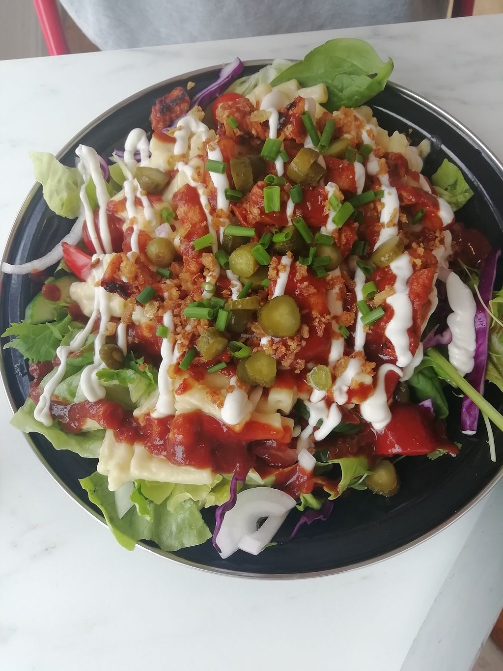 This place is my favourite local vegan eatery. Everytime I eat-in or get a takeaway I am never disappointed. The food is cooked to order and the presentation is superb. You can choose from a variety of toppings on either fries, hotdogs or salad. The atmosphere of the restaurant is relaxed, quirky and cool and the staff are very friendly and accommodating.