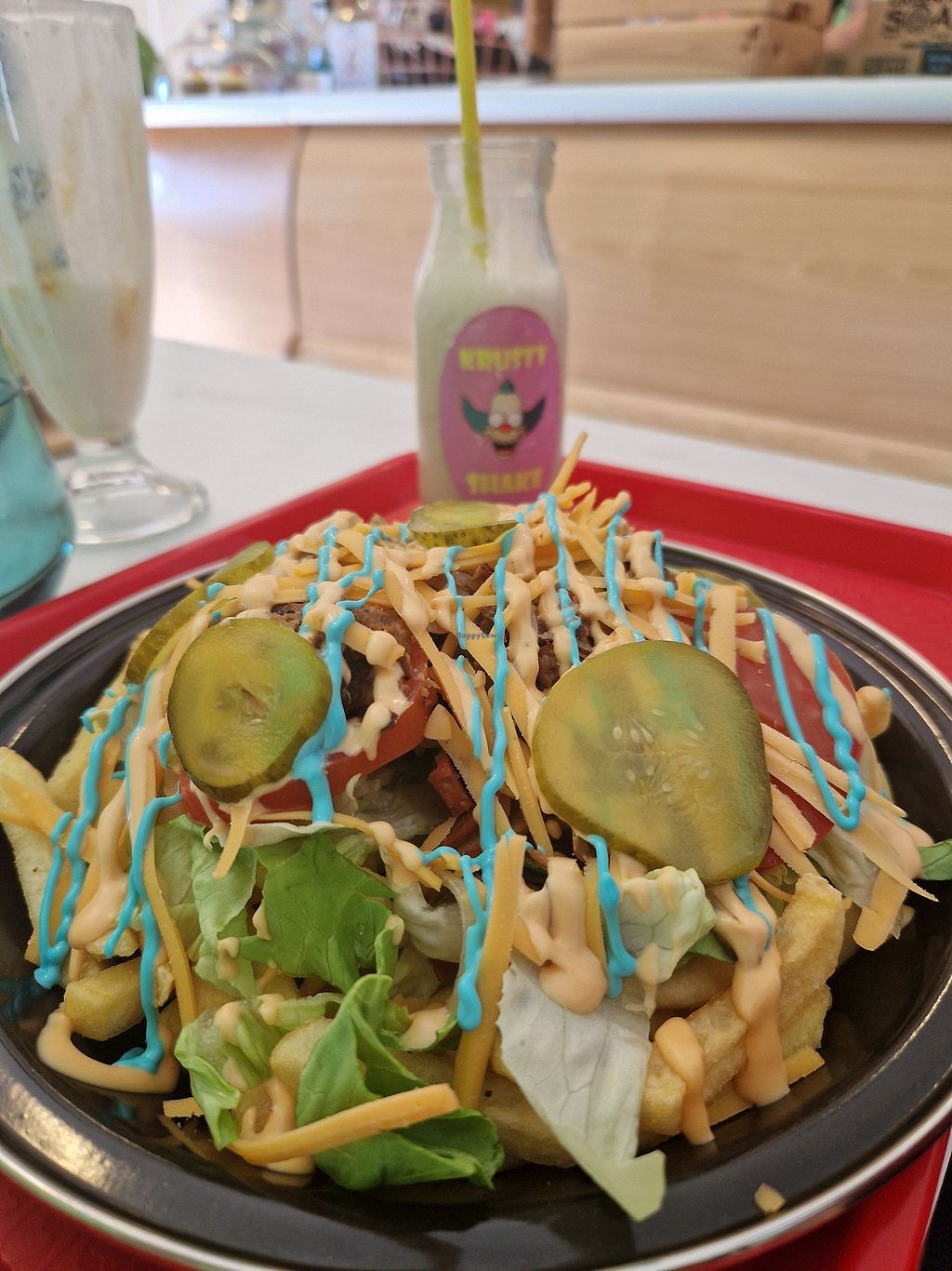 Good food choices and nice cozy environment. I had the special which was very good. But I didn't really like the krusty burger. The milkshakes too were very good