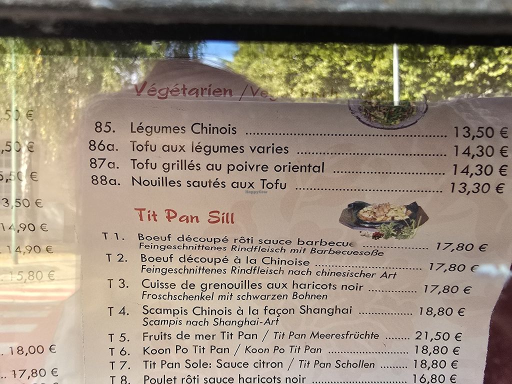 Serves meat, vegan options available. Chinese restaurant where three-quarters of the vegetarian dishes are vegan, as well as some starters. Also has some sushi that's either vegan or can be made vegan by omitting the cheese. Has a sushi train as well. Open Tue-Sun 11:00-14:30, 17:30-23:00. Closed Mon.