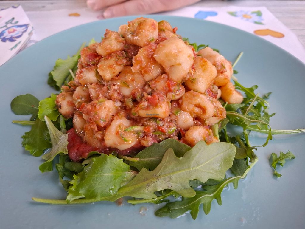 Gnocchi di patate fatti in casa con pesto freddo di pomodori e zucchin…