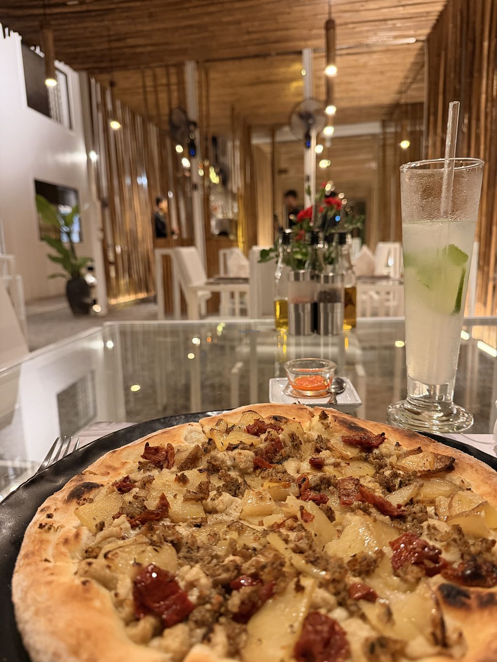 Broccoli pizza with home-made vegan mozzarella & anchovies, 10 USD in …