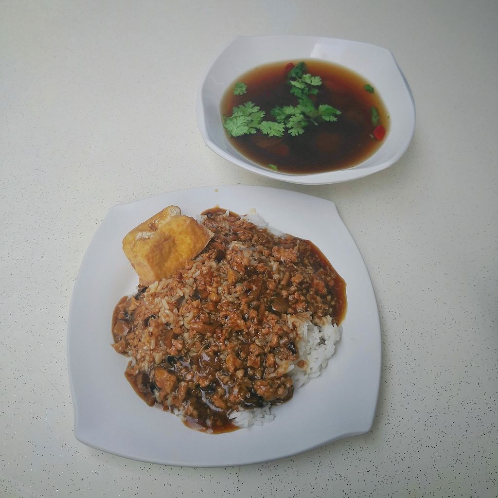 This dish is known as 卤肉饭 in Chinese. Stewed minced meat over rice. Ov…