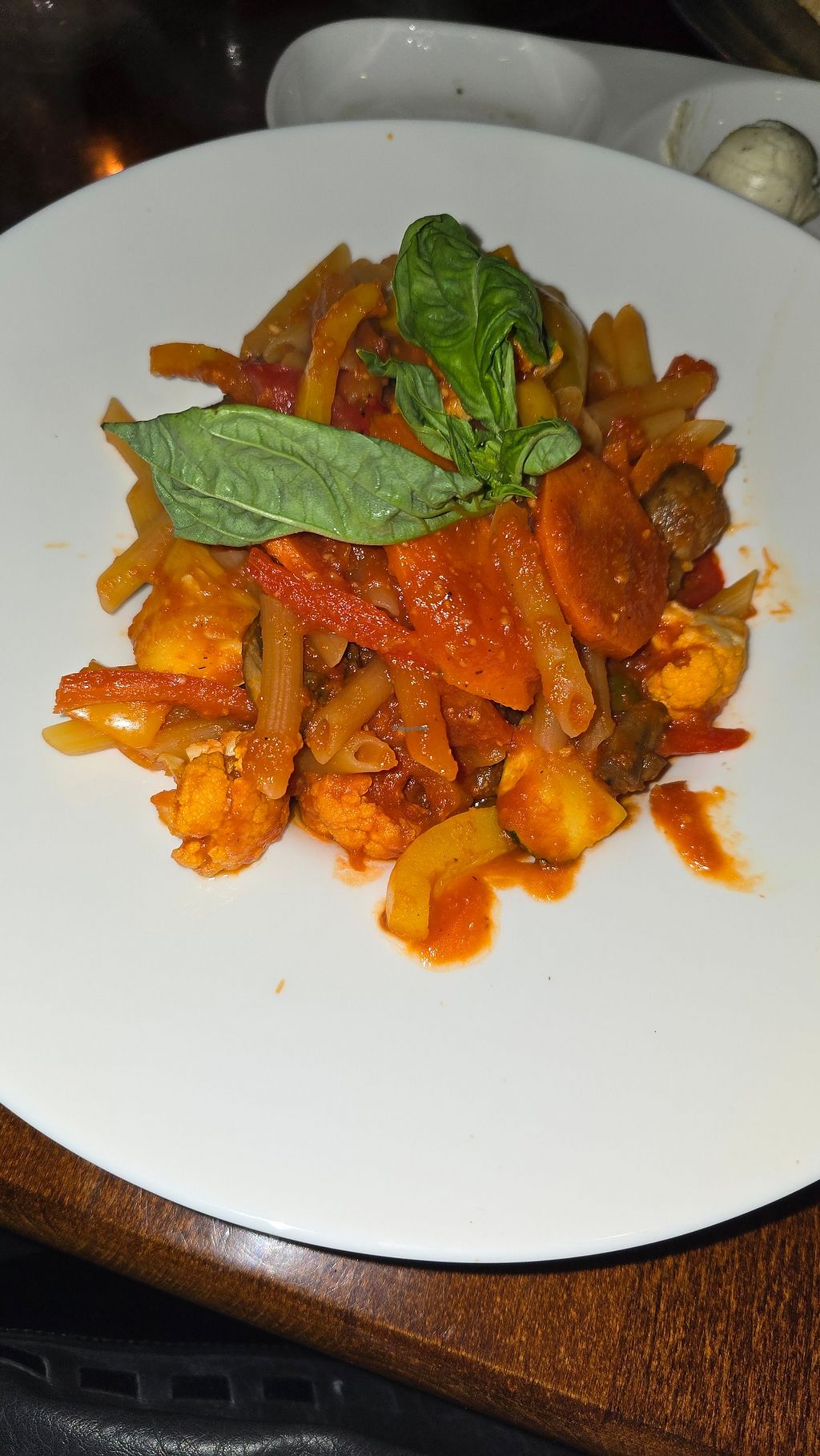 The place is upscale, very nice. They offer many vegan options. I ordered the pasta with veggies and it was very good. The pasta is dense so its super filling. The waiter was very attentive always checking in but also letting us eat.