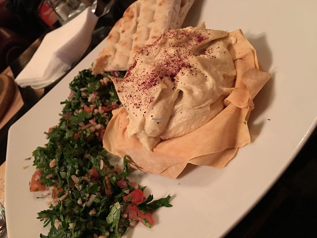 Read moreWe hoped maybe he just didn’t understand what vegan meant. But looking over the menu there were 4 vegetarian main meals and that’s it. The only apparently “safe” vegan option was the hummus and tabbouleh entree, so we just ordered that and some cocktails.