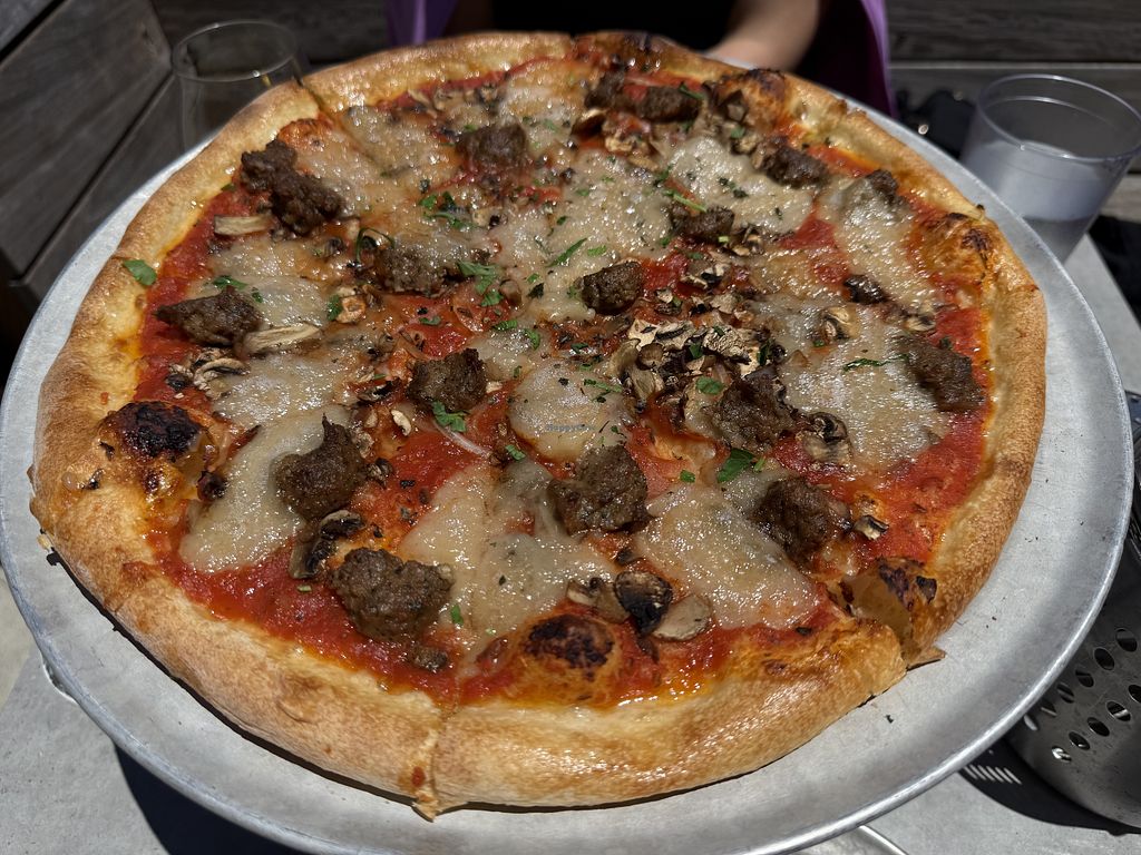 Thin crispy crust was delicious and with Miyokos cheese it was great. Was happy to see vegan meatball and vegan sausage as options to add toppings along with the usual veggies.