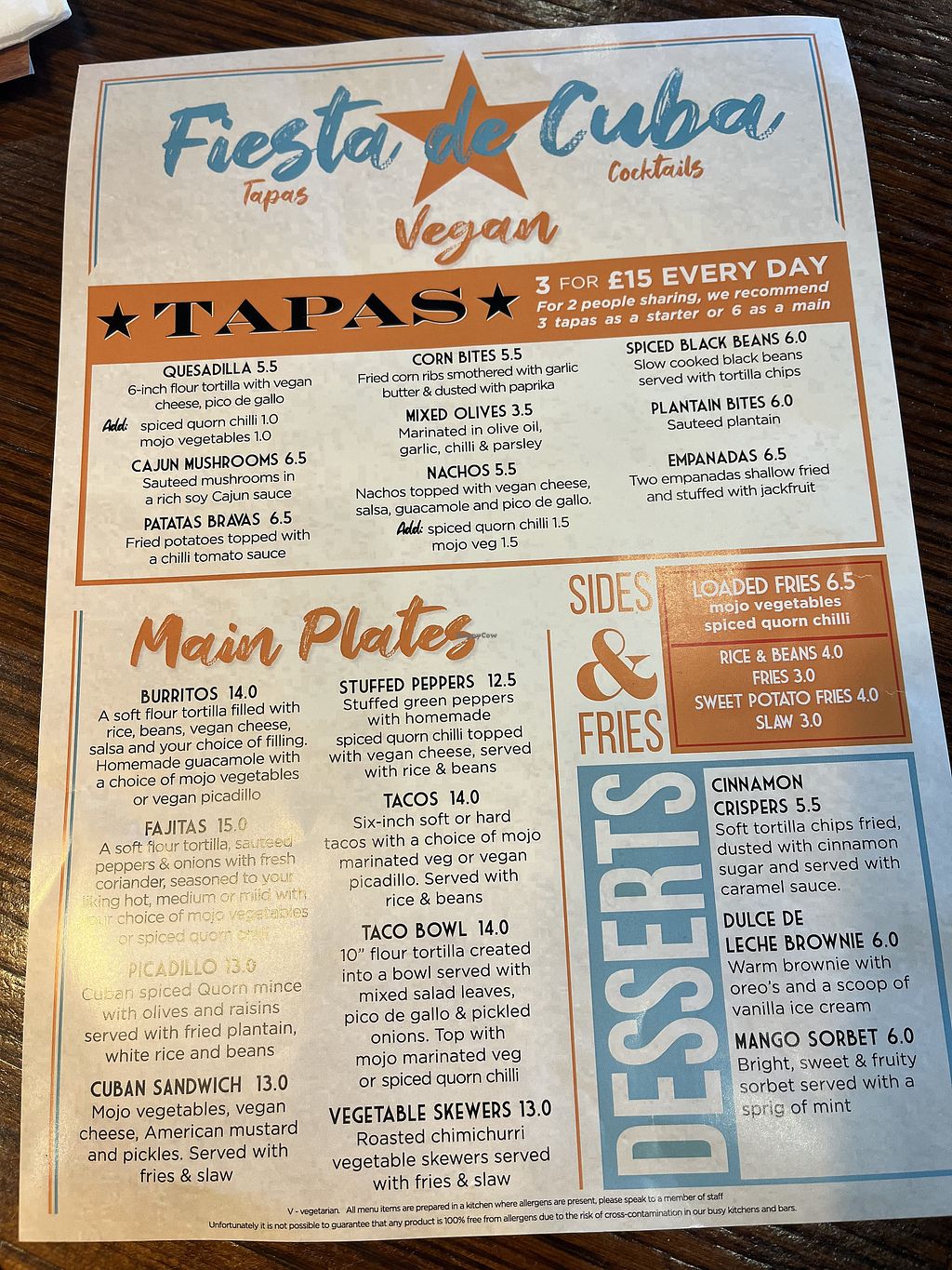 Visited on a Sunday lunch time. Plenty of room. Loved that it had a vegan menu. Lots to choose from. Desserts too ! Worth a visit.