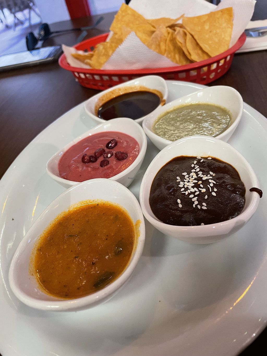 There were so many vegan options that we had to start with a taste test of their moles before we could order anything else.