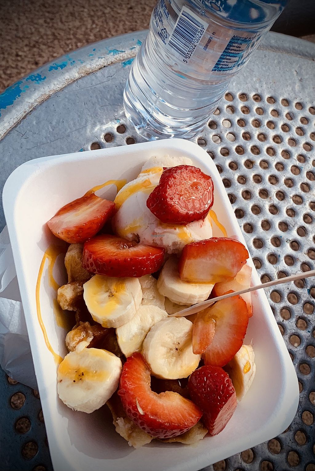 The owner was a delight to meet, service with a smile 😊 how delicious 😋 I’m glad I popped by for a visit x waffles with caramel sauce, vanilla ice cream and fresh berries/banana and a bottle of water x