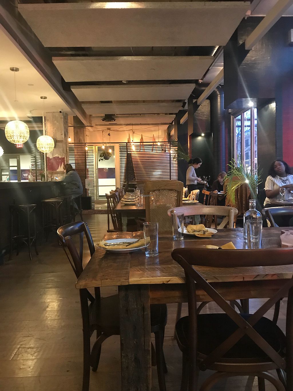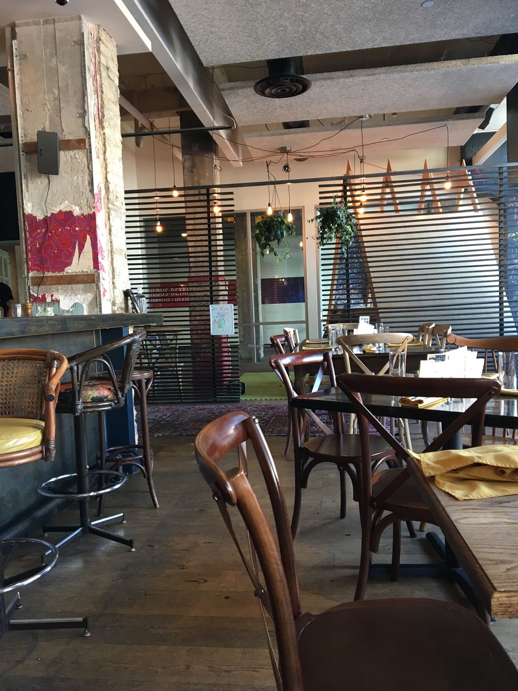 Finer dining restaurant and bar est. Jan 2018. Offers a fusion menu with dishes like tempeh tacos, beet carpaccio, vegan ravioli, and raw lasagna. Bar opens till 11pm. Has kids' play area. Went fully vegan Nov 2018. Reported closed May 2020.