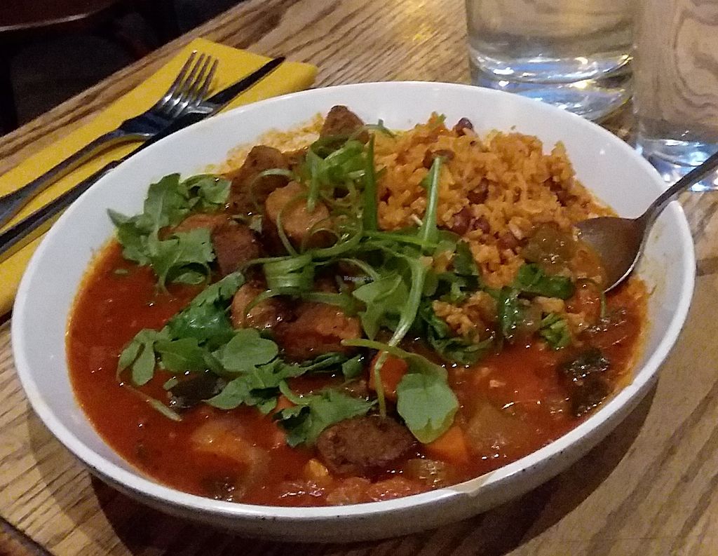 I was in Minneapolis for a conference and had dinner here. My meal was awesome! I had the Jambalaya with plant-based Andouille sausage (from The Herbivorous Butcher).