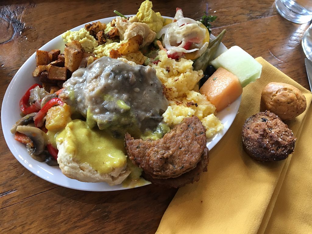 Gotta love an all vegan restaurant where you can eat anything worry free. The breakfast buffet had a really wide variety of options like French toast, biscuits and gravy, scrambled tofu, and more. Really tasty and so happy we came here!
