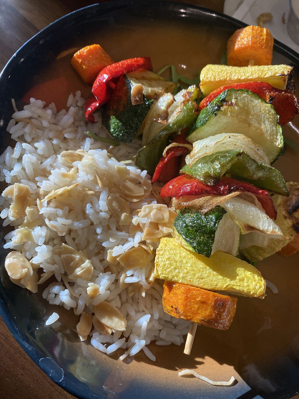 I don’t advise stopping here. Very overpriced. I ordered hummus, which wasn’t bad- to add garlic it cost $3.00 extra. Vegan kabob - veggies were drenched in oil- it taste like I was just eating oil instead of vegetables. Rice tasted like there was butter in it. Small portions. Service wasn’t good either- very slow.
