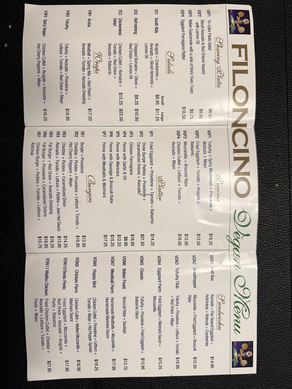 Vegan lunch/dinner menu