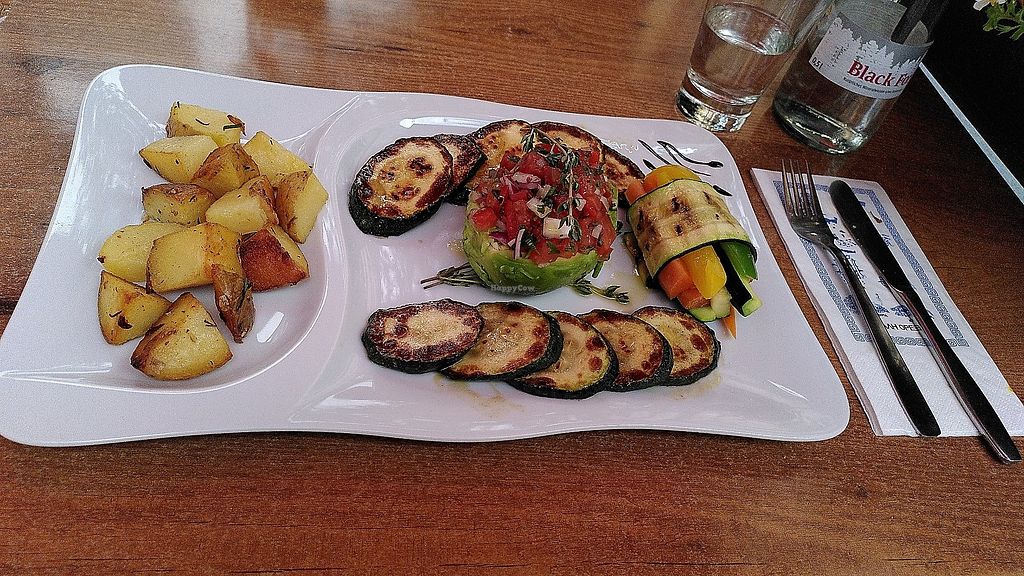 Gefüllte Avocado mit Grillgemüse und Kartoffeln (vegan)