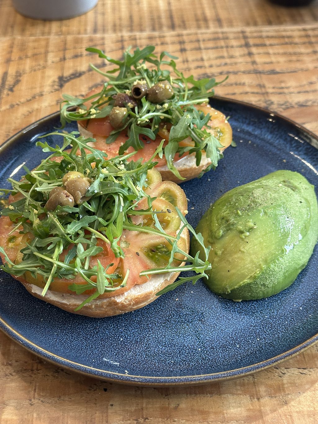 Very cozy, industrial/rustic looking cafe with vegan options. I had a smashed avocado toast with fresh tomato’s, freshly pressed orange juice and soy latte. They also had vegan croissants and orange loaf bread.