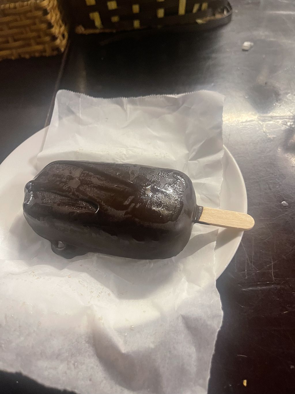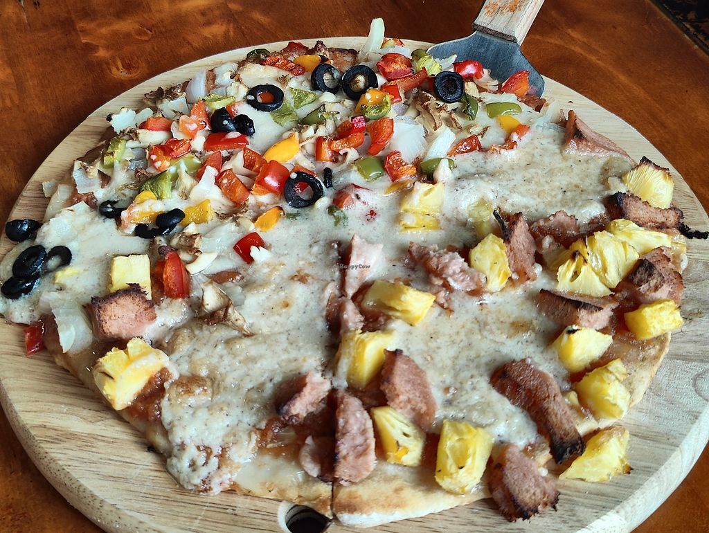 Pizza without tomato sauce - 1/2 Hawaii and 1/2 Mushroom (delicious!)