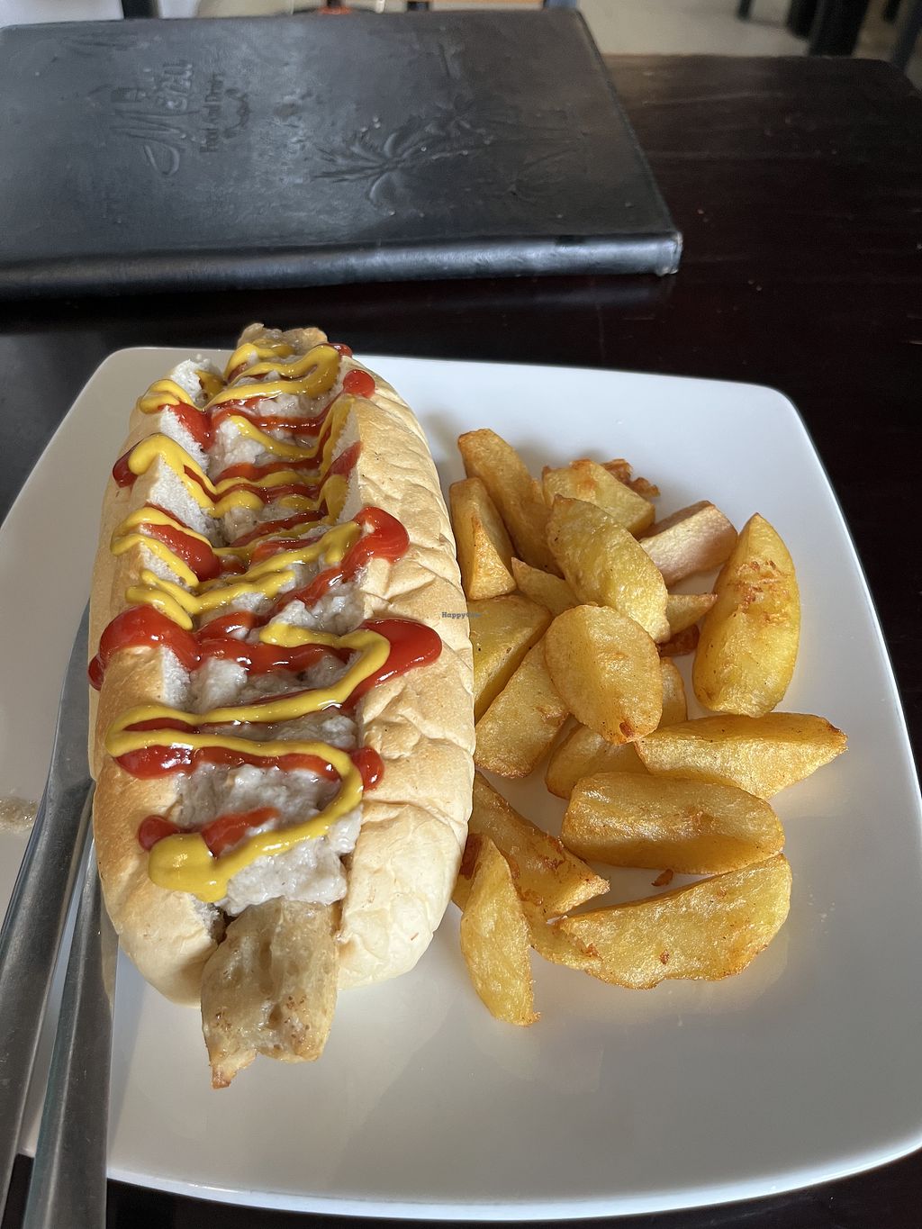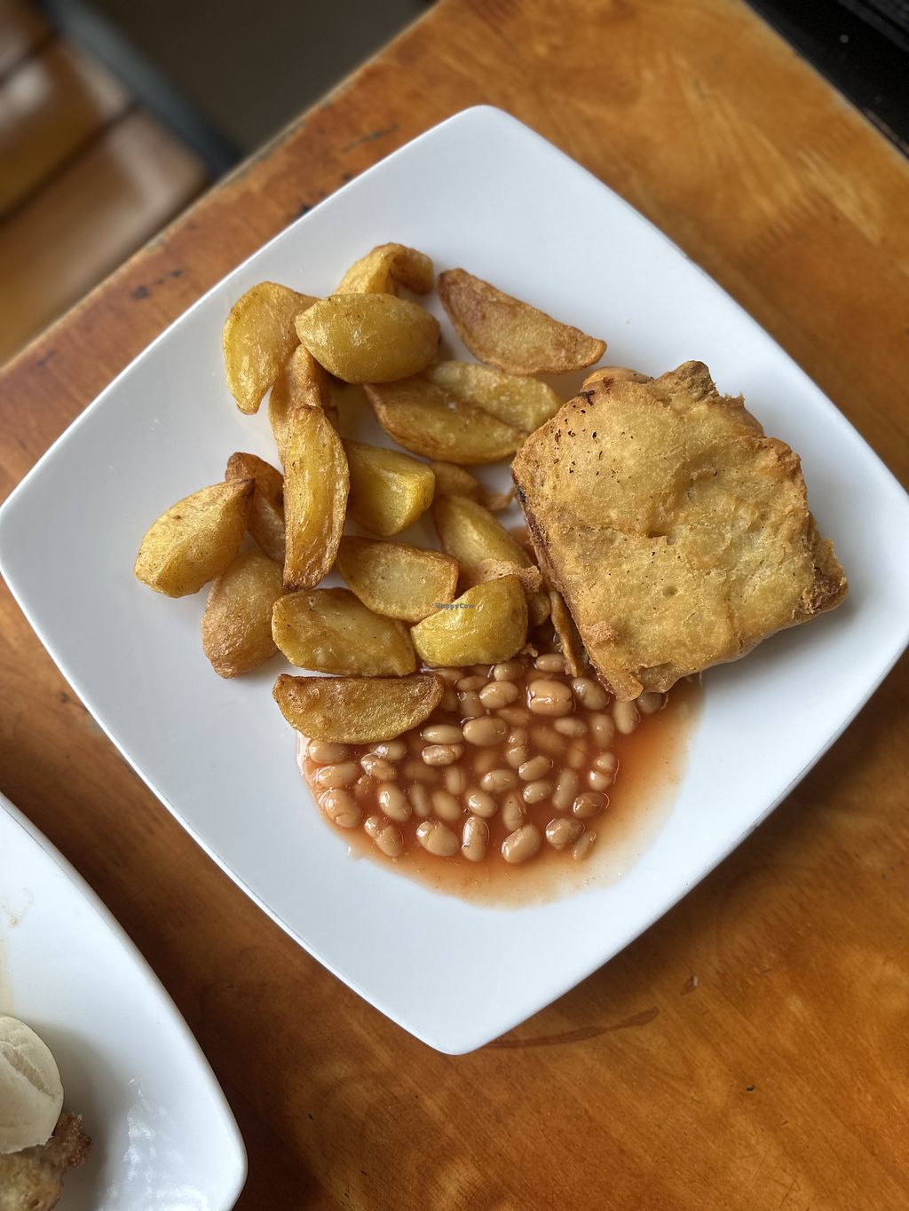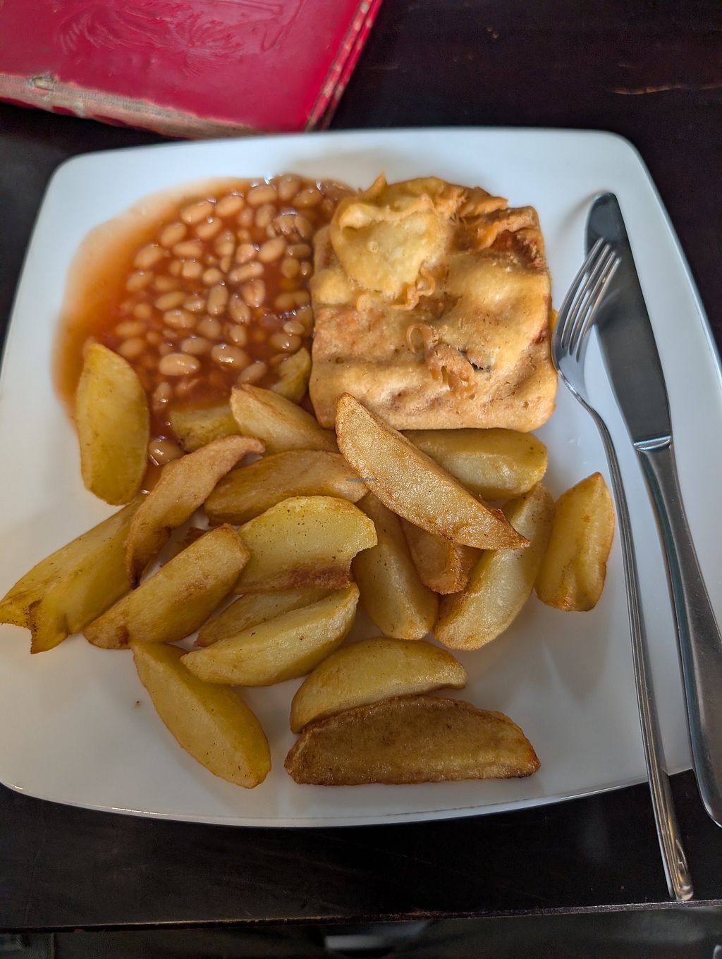 Vegan fish and chips with beans
