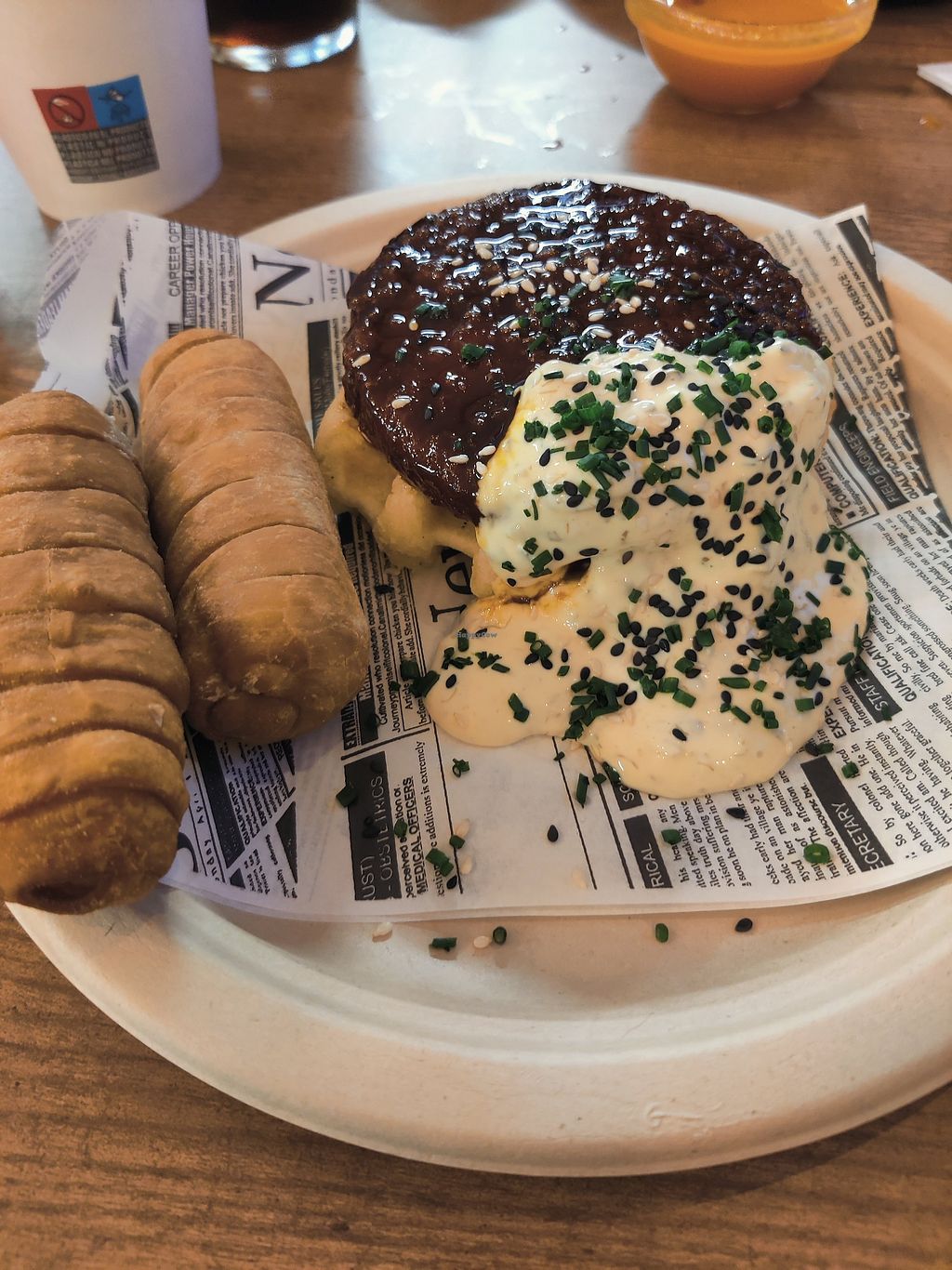 Korean burger on a waffle and homemade tequeños