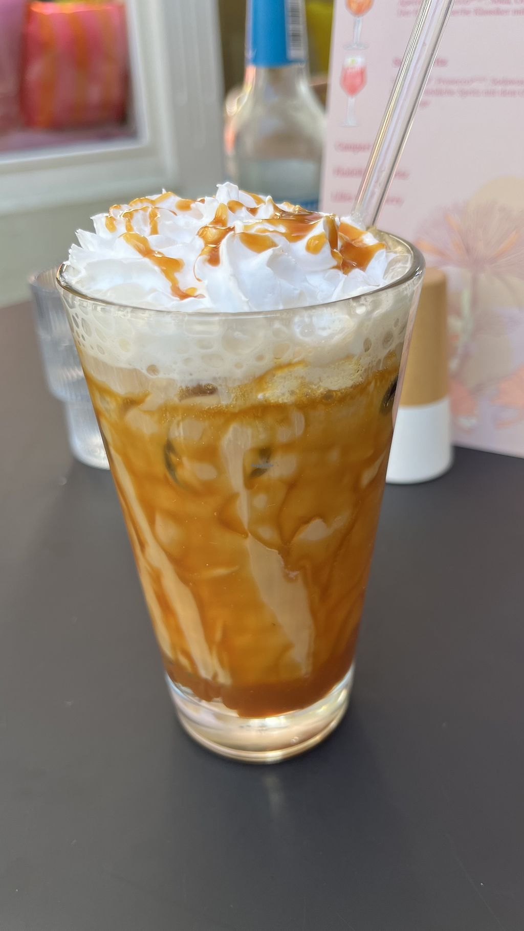 Read morePros: Vor allem im Sommer gemütlich , Iced Coffee mit veganer Sahne