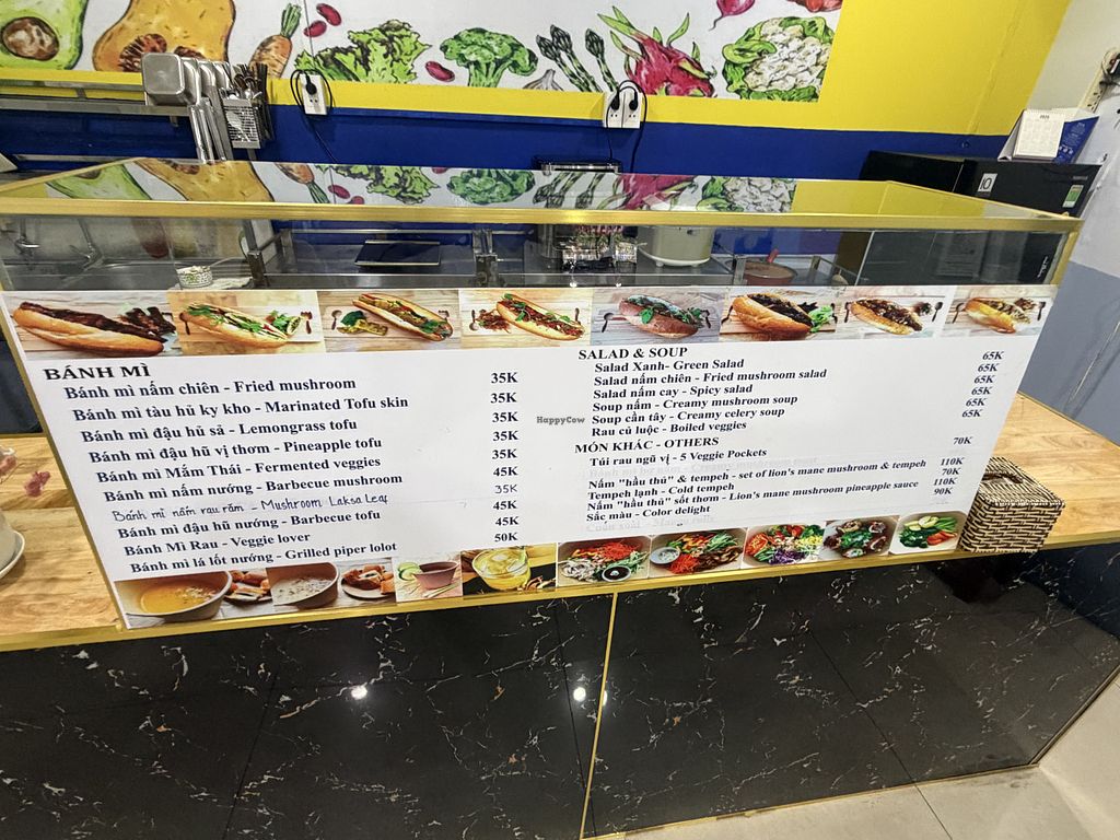 Take out and delivery restaurant with a seating area with 15 seats for dine in. All dishes and ingredients are vegan with no animal products and no dairy including sauces, condiments and toppings. Packaging is almost entirely plastic free, using mostly paper. Can be found on food delivery apps such as Baemin and Grab Food. Menu focuses on banh mi sandwiches but also includes mixed rice, noodles and more. Also sells sauces. Only brown rice is used. Relocated from 303 Nam Ky Khoi Nghia, District 3. Open Mon-Sat 7:00am-9:00pm. Closed Sun. except Chay days (1st & 2nd lunar cal.)