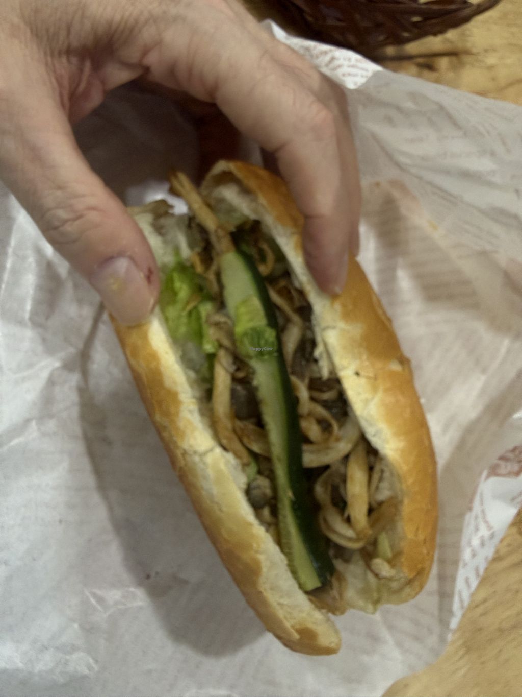 Super delicious vegan banh mi. Everything is vegan. Probably the best homemade vegan mayonnaise too. Lovely owner. Staff speak English. Can deliver