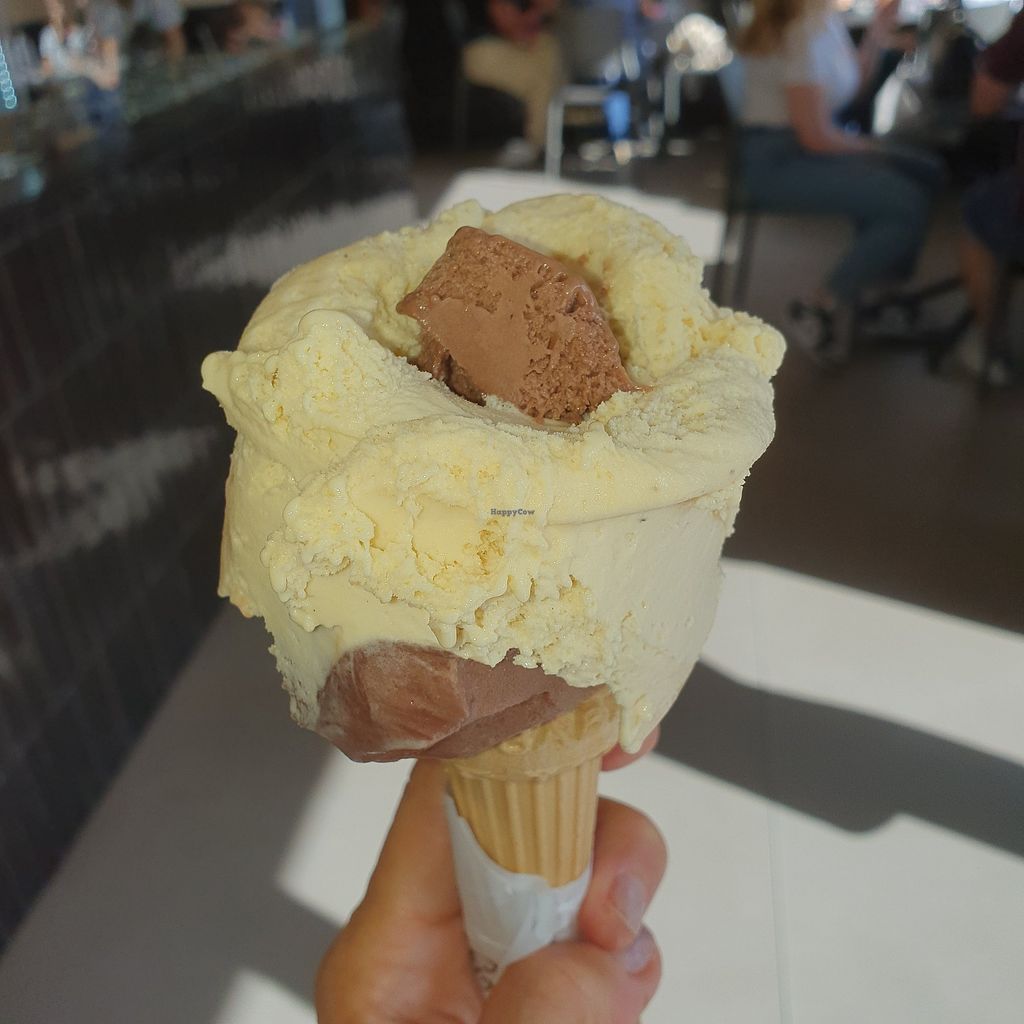 Gelateria offering some vegan flavors, including fruit-based and creamy options. Open Mon-Sat 12:00-22:00, Sun 10:00-13:00, 15:00-22:00. More