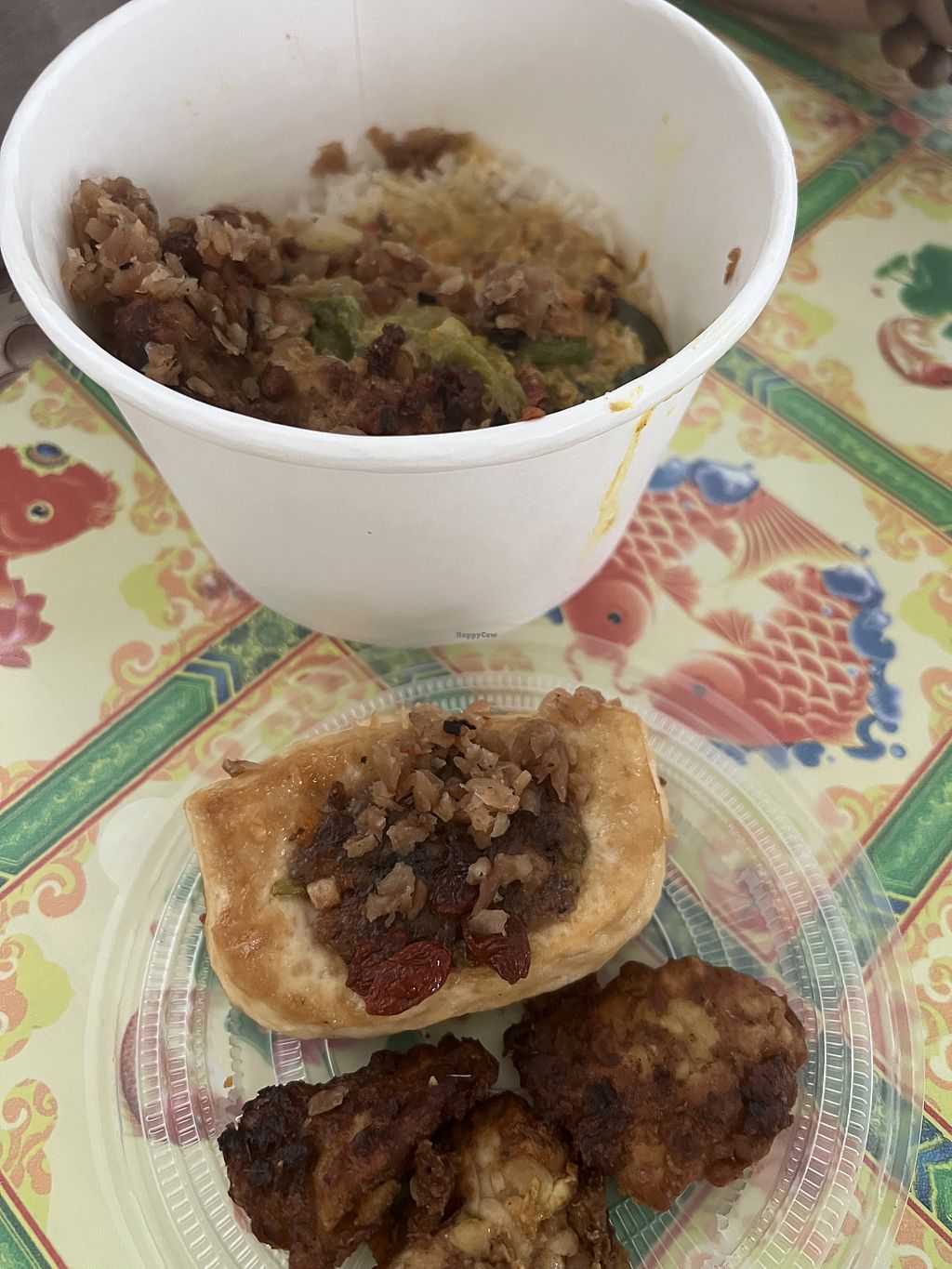 Run by the family of former Thunder Tree fully vegan stalls (now also running Tian Tian Chi Su). Offers local favorites such as kolomee and hakka specials, as well as signature chilli HK kolomee, braised tofu and mushroom with organic brown rice, and many other daily specials such as yam cake. Hakka leicha rice now available in limited quantities daily from 9:30 am onward. (Despite 'vegetarian' in the name reported to be 100% vegan.) Reported closed October 2023.