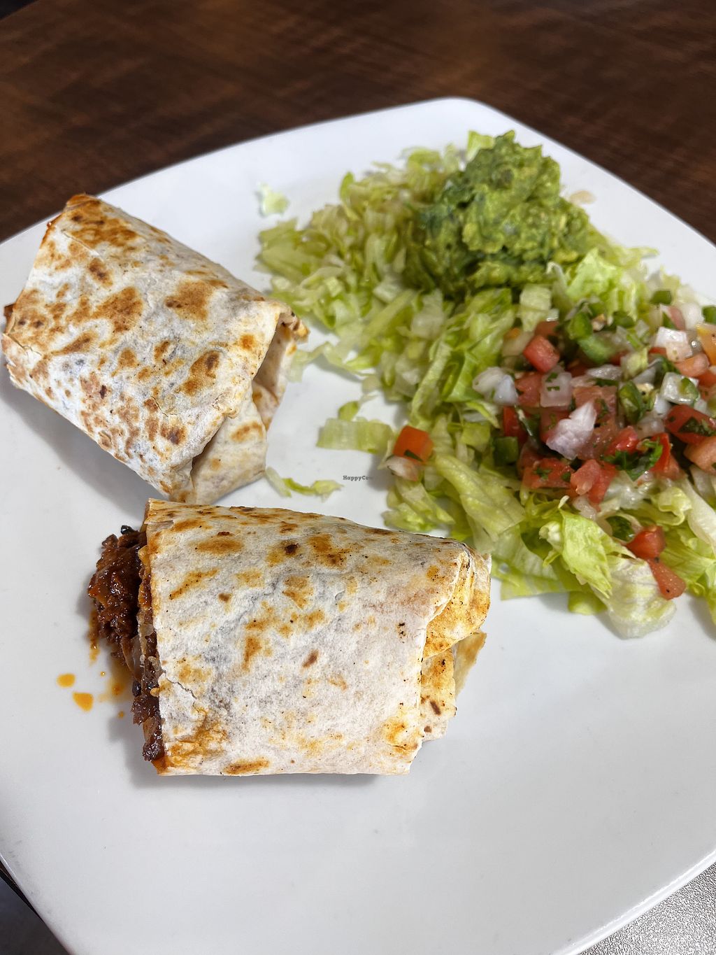 There is only one vegan option, the burrito with vegan chorizo. But you can order sides of you don’t want that. The portions were generous and included pico de gallo and guacamole. I got a side of breakfast potatoes, but had to share with my husband because there was too much food for me. The coffee was good, as well. Friendly staff and easy to find location.