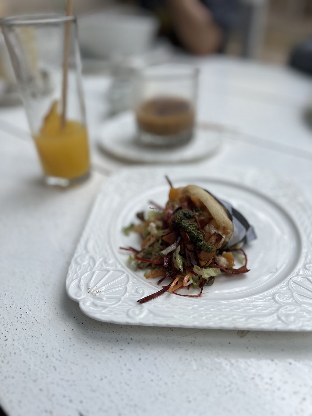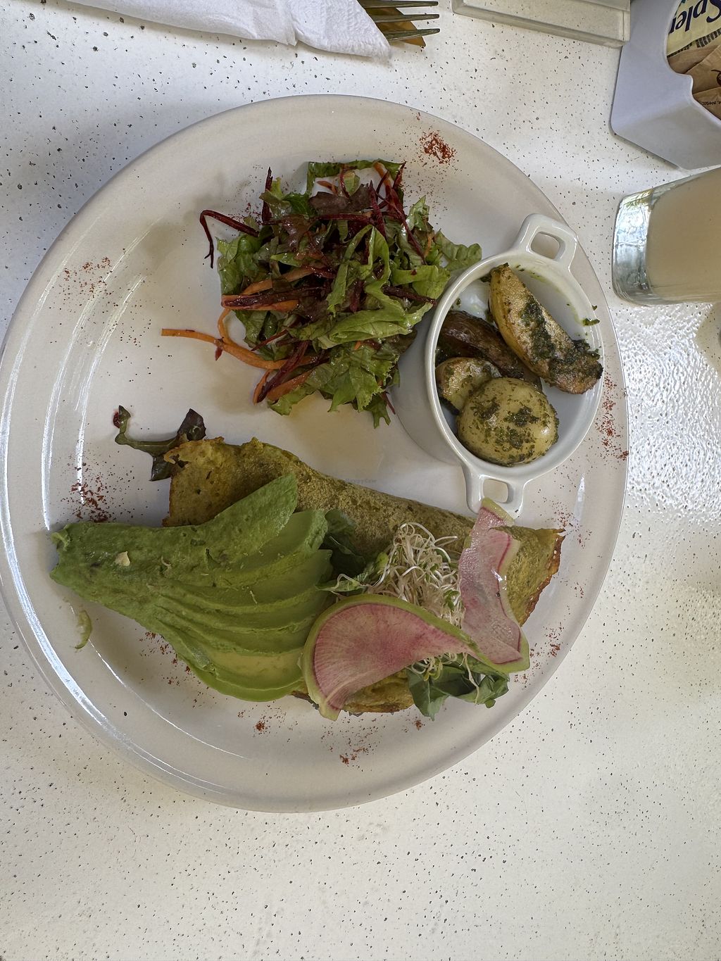 SPRING vegan omelette: Vegan Eggs, Beet Hummus, Quinoa, Mushrooms, Zuc…