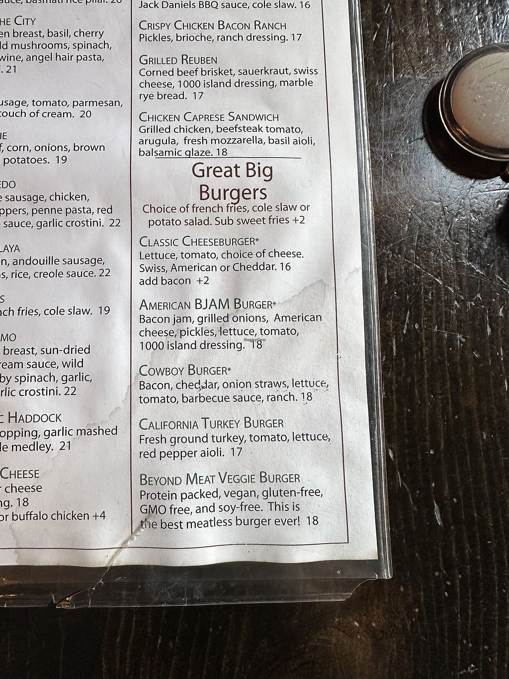 Read moreWas pumped abt the vegan beyond burger & grateful for protein. The only thing it lacked was some sorta vegan cheese, mayo, or sauce. Appreciated that it was clearly labeled vegan!